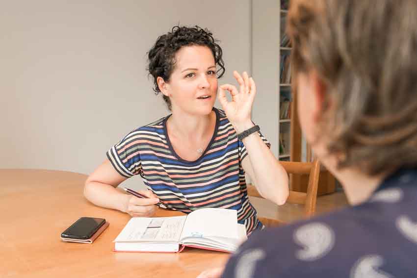 Ihr Warum ist ein subtiles Thema, das zwischen den Zeilen spürbar aber nicht mit Händen greifbar ist. Sei dies im Text aber auch in den Fotos. Dein Auftritt löst beim Betrachter ein Gefühl aus, im besten Fall ein positives, so dass sie bei Ihnen buchen werden. Ein gestelltes, hölzernes Lächeln in die Kamera ist dabei nicht gemeint. Es geht um die Minisekunden dazwischen, zum Beispiel wie hier, mit dem Blick zur Kundin. Genau das wollen Ihre potenziellen Neukunden sehen, wie Sie mit ihnen interagieren. Denn dies sagt so viel über Ihr Warum.